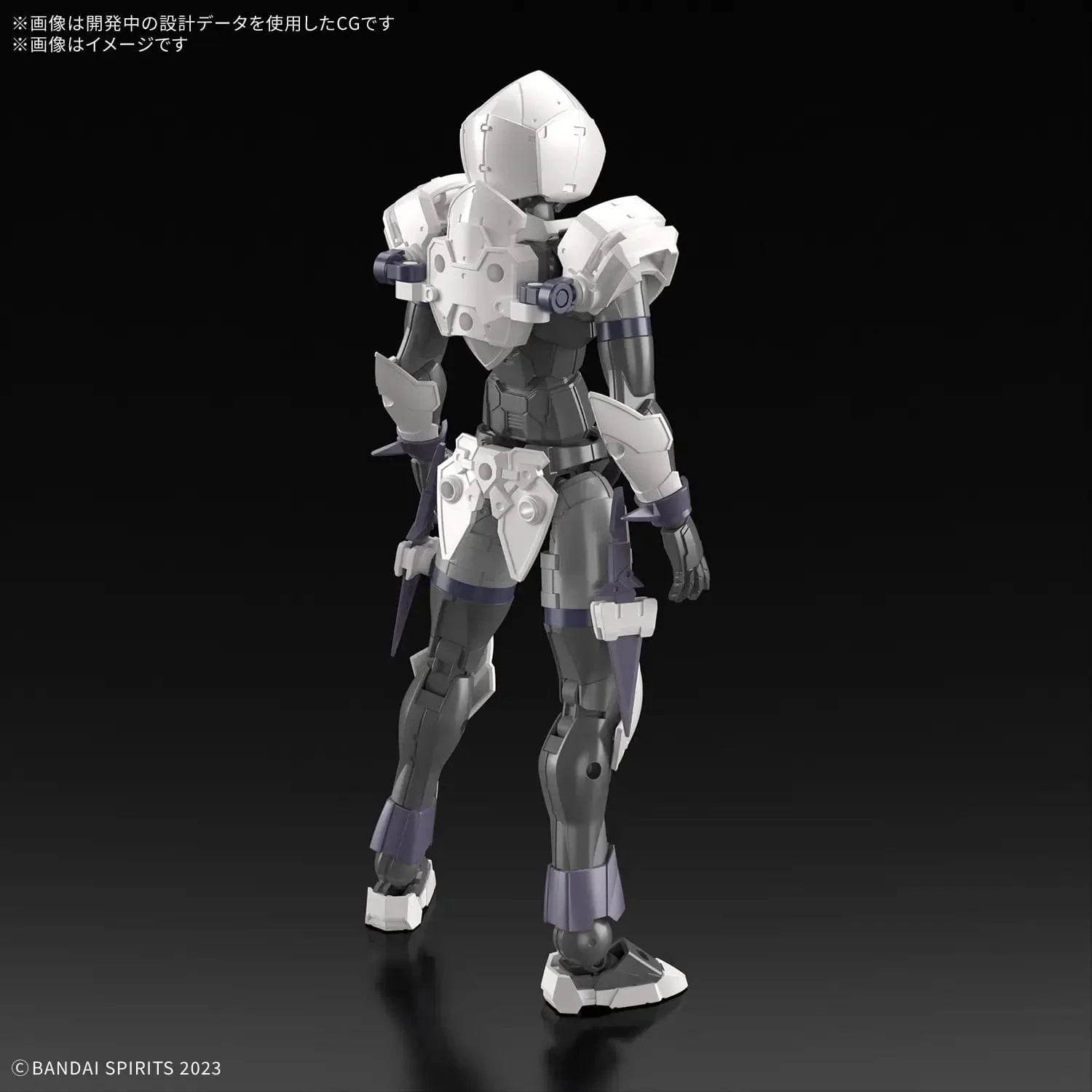 Bandai's "30MF (30 Minutes Fantasy)" figure-kit series allows you to create your own fantasy-based figures and characters! The starter set includes armor and armed parts in addition to the base "silhouette" (elementary body). The body included with the Rozen Assassin is the same as the 30MF Rozen Knight; the "silhouette" is fully posable like a human body, including movable axes on the head and neck that allow natural flexibility. The shoulder joints are designed with great care to keep the body line intact even in bold poses; the movable axes on the chest, torso, and waist work together with the sliding mechanism at the base of the waist joint to achieve natural poses. Armor and weapon parts are included to combine with the "silhouette" to "change jobs" to that of the Rozen Assassin! Two daggers are included as weapons; flexible movement is achieved by attaching the shoulder and waist armor via the joint on the back. The attribute of the Element Core is "water." The face design and color are different from the Liber Assassin (sold separately).