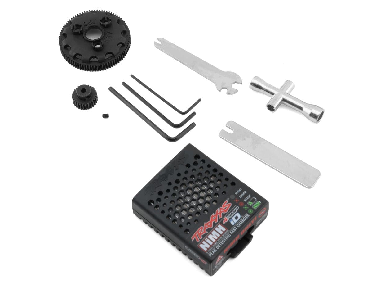The Rustler’s clipless body, wheels, tires, and electronics elevate its performance and convenience. The innovative clipless body system simplifies body removal and attachment, while molded body reinforcements protect against impact damage. The 2.8" black and chrome 6-spoke wheels, combined with Alias® step-pin rear tires and ribbed front tires, provide exceptional traction and stability on various surfaces. The Titan® 12-turn 550 motor delivers explosive power and acceleration, supported by the waterproof XL-5™ electronic speed control, which offers three programmable drive profiles, including a patented Training Mode™ for new drivers. The TQ™ 2.4 GHz radio system ensures precise long-range control, while the waterproof receiver box and high-torque servo allow for all-weather driving excitement. These features make the Rustler a standout option for enthusiasts seeking a high-performance, durable, and user-friendly stadium truck.