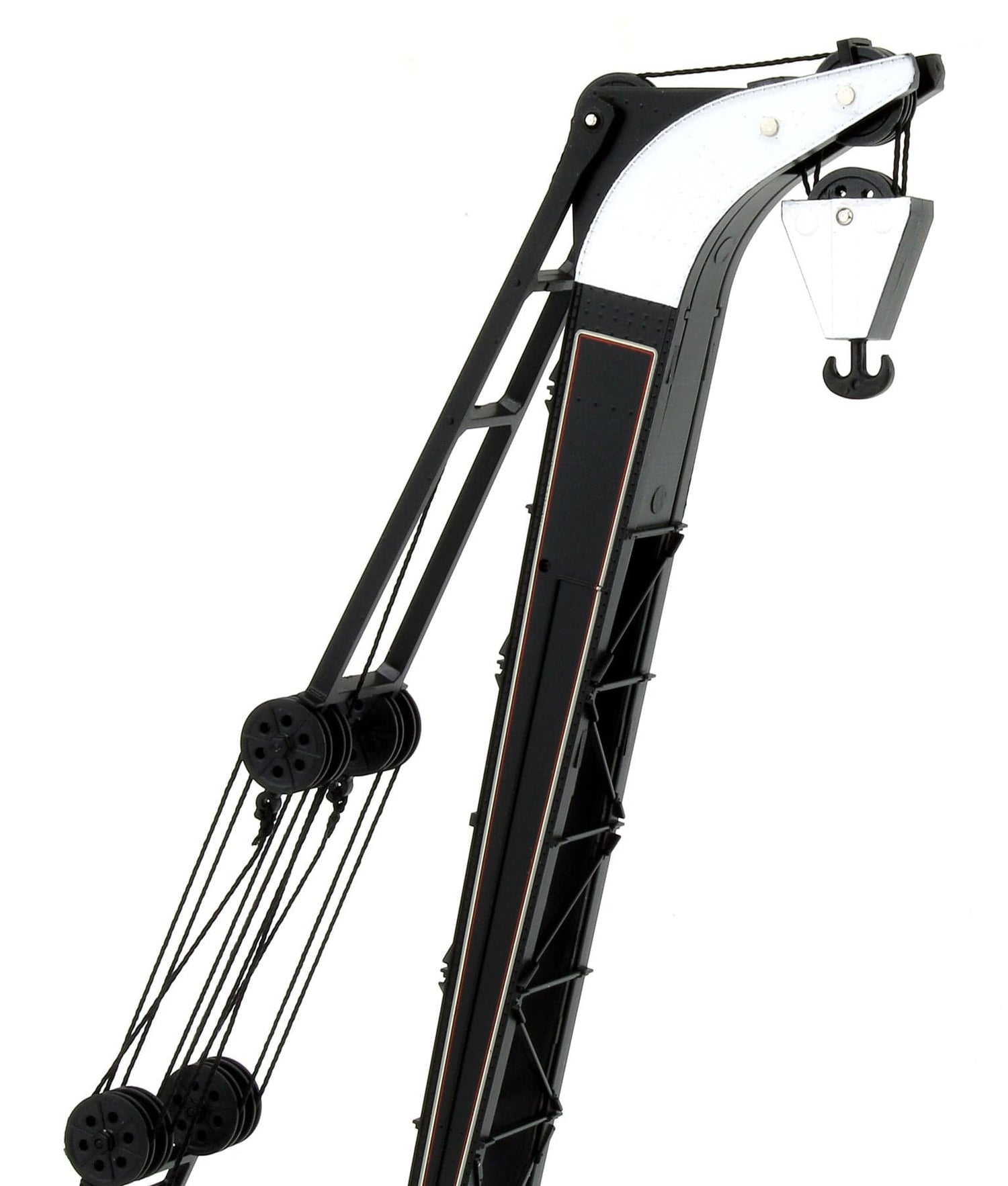 The complex rigging and gearing of the machines has been faithfully reproduced to imitate prototype operation as accurately as possible in this scale. Operation of the crane's jib and hook is achieved by a key mechanism in the rear of the crane body. The boiler hatches are demountable using a magnetic tool included in the accessory pack, permitting access to two sockets that turn to raise and lower the crane jib and hook. The tiny 'Safe Lifting Angle' indicator on the cab side operates in tandem with the jib mechanism. The four outriggers are poseable, the chimney can be stowed or raised, the roof hatch is hinged and the cab platform is hinged for access.