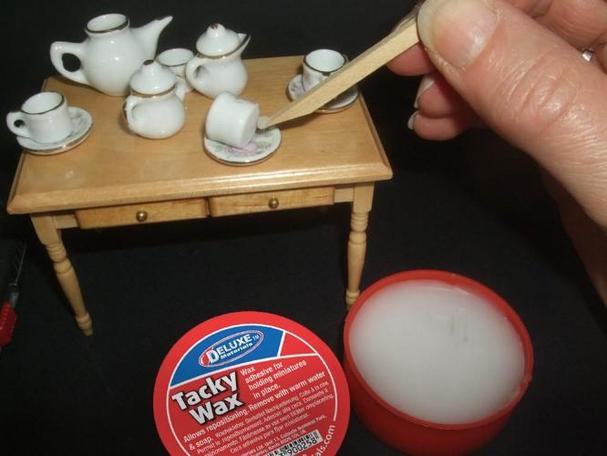Wax adhesive for holding miniatures in place whilst allowing re-positioning.
