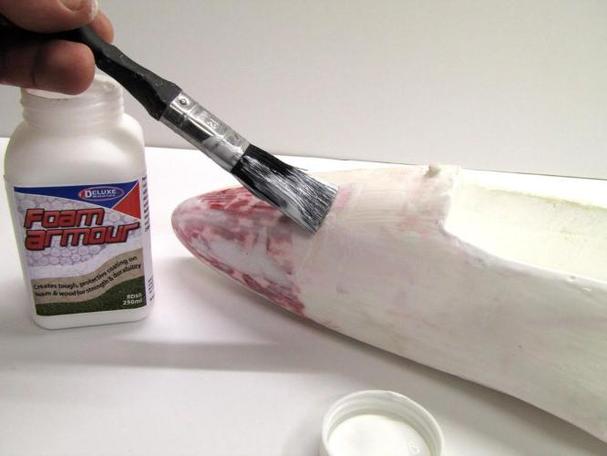 A thick water based resin that sets to produce an attractive, durable, scratch resistant coating on foam to prevent dings, wear and disintegration. It dries to a surface that can be painted and glued easily and will reduce damage.
