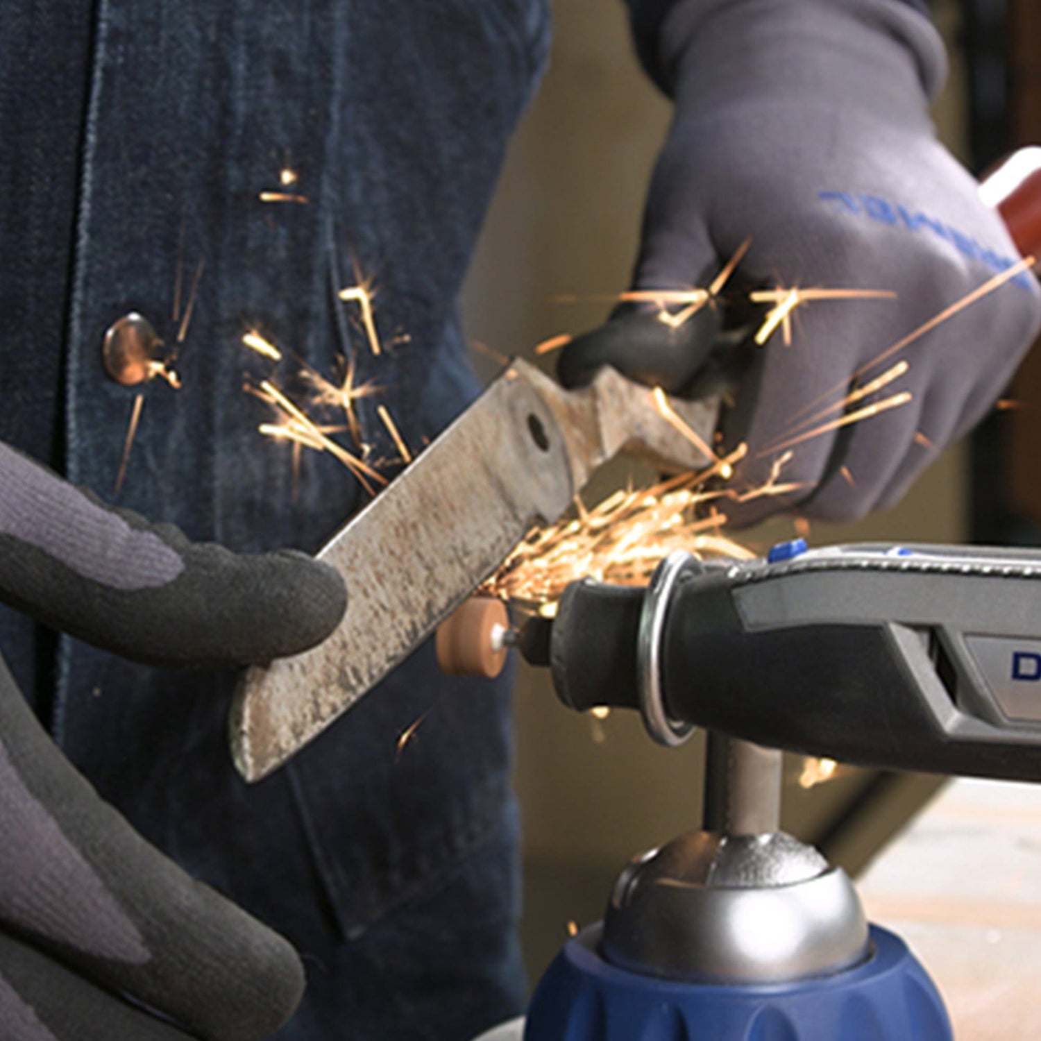 The Dremel Aluminium Oxide Grinding Stone 15.9mm (8193) is ideal for sharpening, deburring and general purpose grinding on most materials including metals, castings, welded joints, rivets and rust. The orange coloured Aluminium Oxide Grinding Stones feature a high-quality industrial abrasive that is perfect for use on metal-like, ferrous materials, like stainless steel, aluminium, brass, copper. Can be used to remove flash from metal castings, deburring any metal after cutting, smoothing welded joints, grinding off rivets and removing rust.