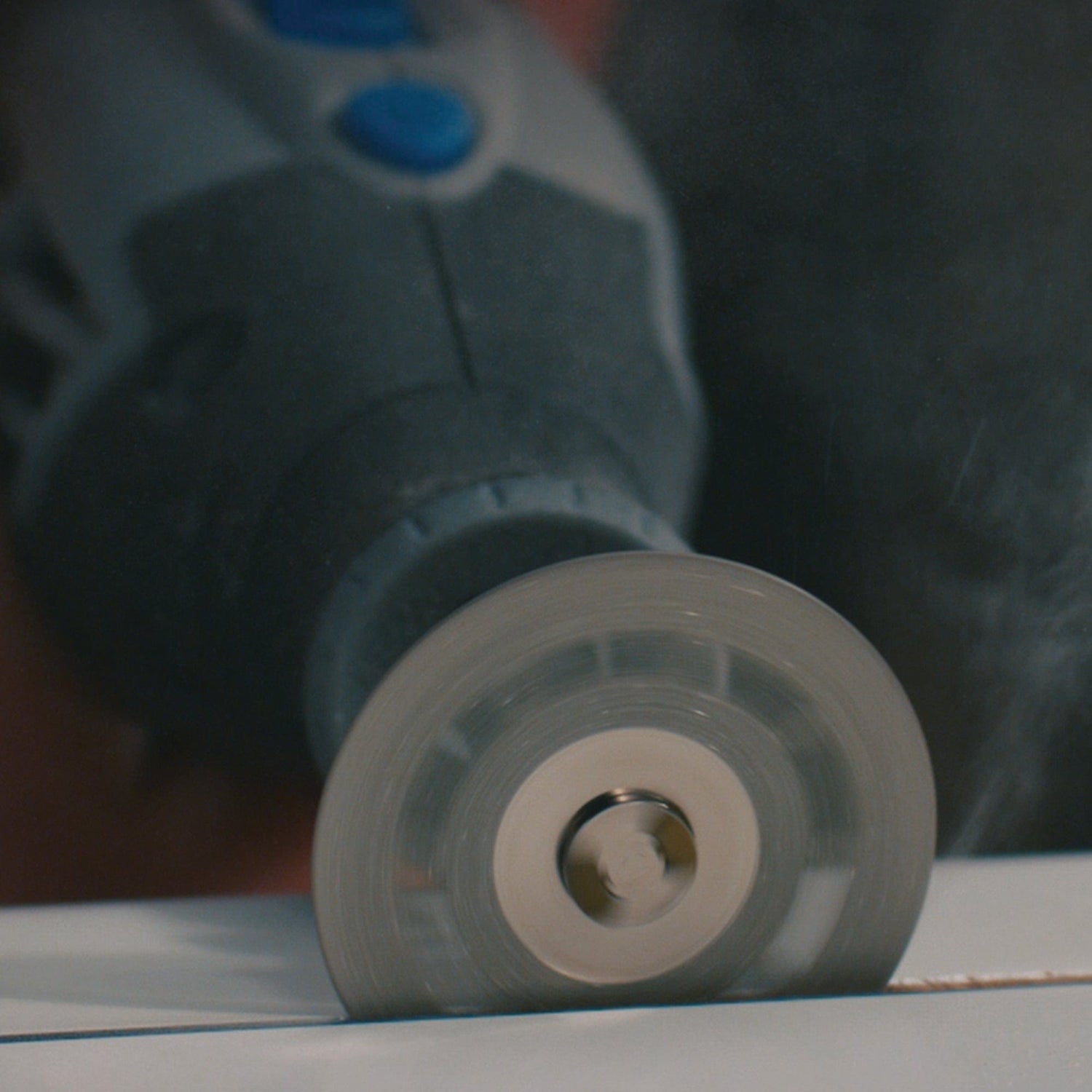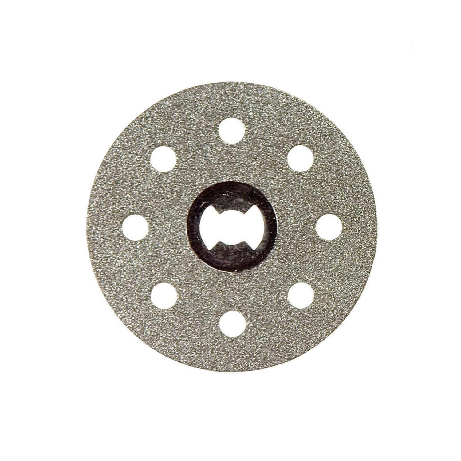 The diamond coating adds durability and longevity, while producing smooth & fine cuts during cutting, sawing, carving and sharpening applications. The holes in the face of the Dremel EZ Lock™ Diamond Point Cutting Wheel 38mm (EZ545) keep it cool during use, ensuring the Diamond Point Cutting Wheel will not lose its shape or break.
