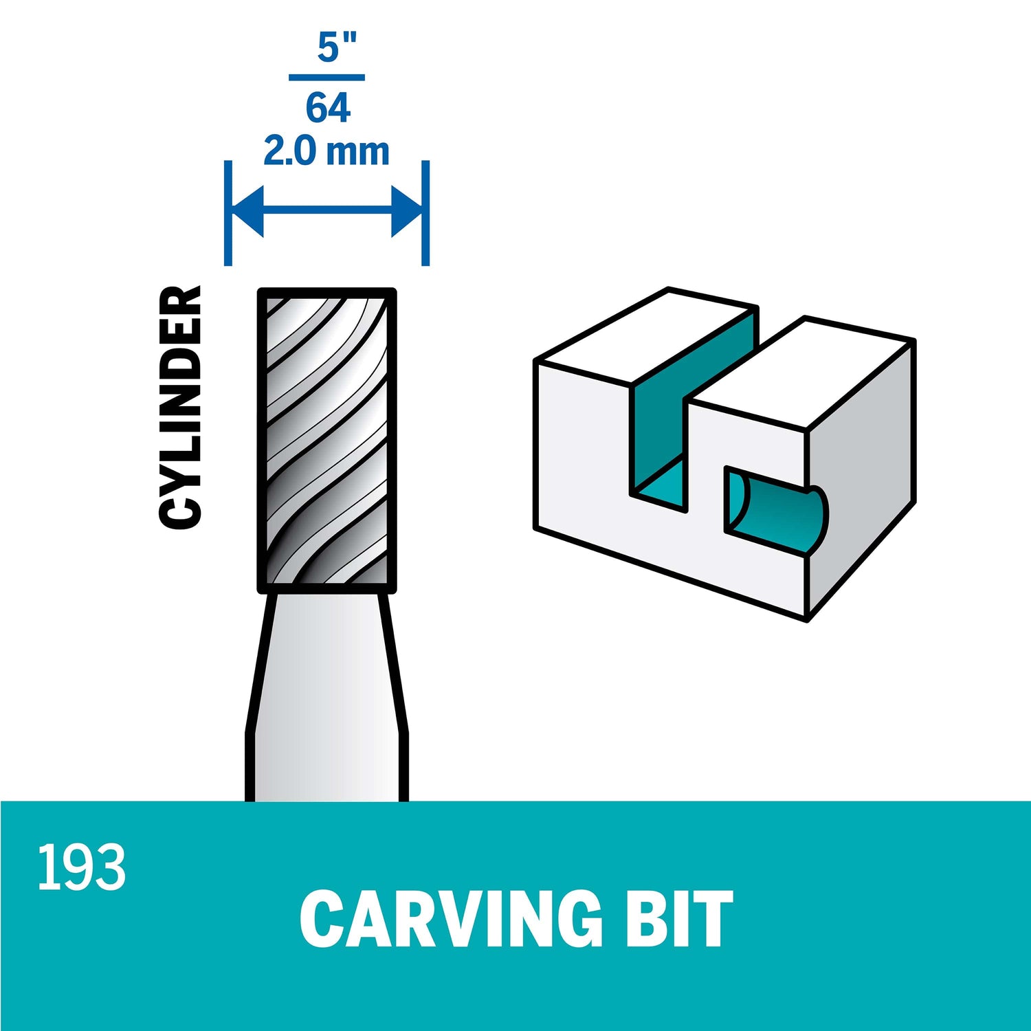 The Dremel High Speed Cutter 2.0mm (193) work well for material removal in applications like shaping, carving, engraving, hollowing, grooving, slotting, inlaying making tapered holes or freehand routing. The Dremel High Speed Cutter 2.0mm (193) is made of high-grade steel, perfect for use on softer materials like wood, plastic and soft metals such as aluminium, copper, and brass.