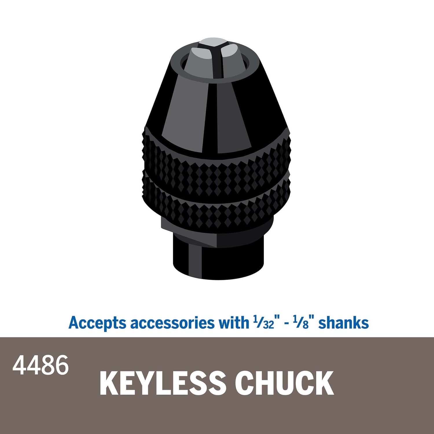 The Dremel Multi-Chuck (4486) completely eliminates the need for a collet and wrench when changing accessories. Ideal for when the application requires numerous accessory changes, and the applications use light-duty accessories including drill bits, sanding drums, polishing wheels, wire & bristle brushes, cut-off wheels, and more.