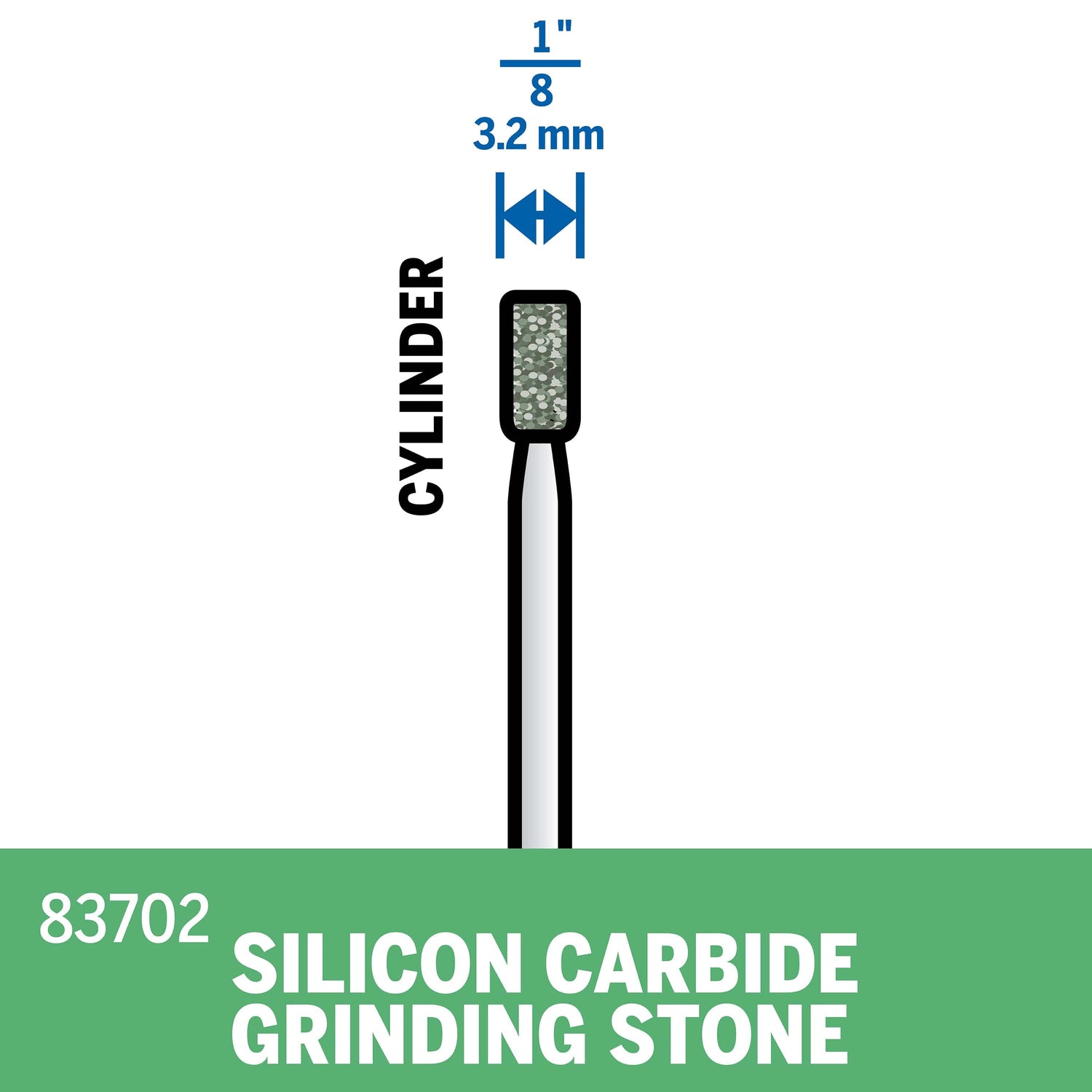 The Dremel Silicon Carbide Grinding Stone 3.2mm (83702) is designed to help you grind and etch, as well as sharpen and deburr. The Silicon Carbide Grinding Stones are tougher than Aluminium Oxide Grinding Stones, making them ideal for use on hard materials such as stone, glass, ceramics, porcelain and non-ferrous metals.