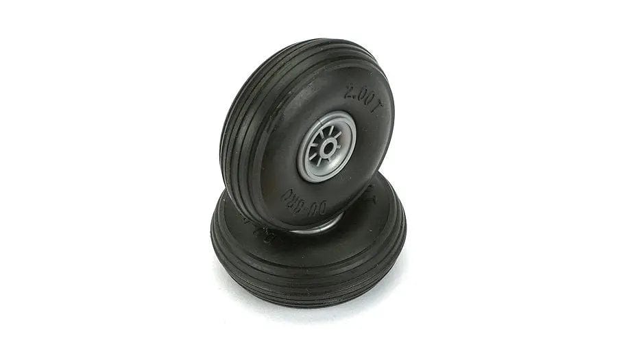 DU-BRO s low bounce captive air wheels have flown on more airplanes over the years than any other wheels on the market! The wall thickness is consistent throughout the wheel giving you a balanced tire. Comes complete with a sporty nylon metallic hub. Works well on grass & paved runways. 2/pkg.