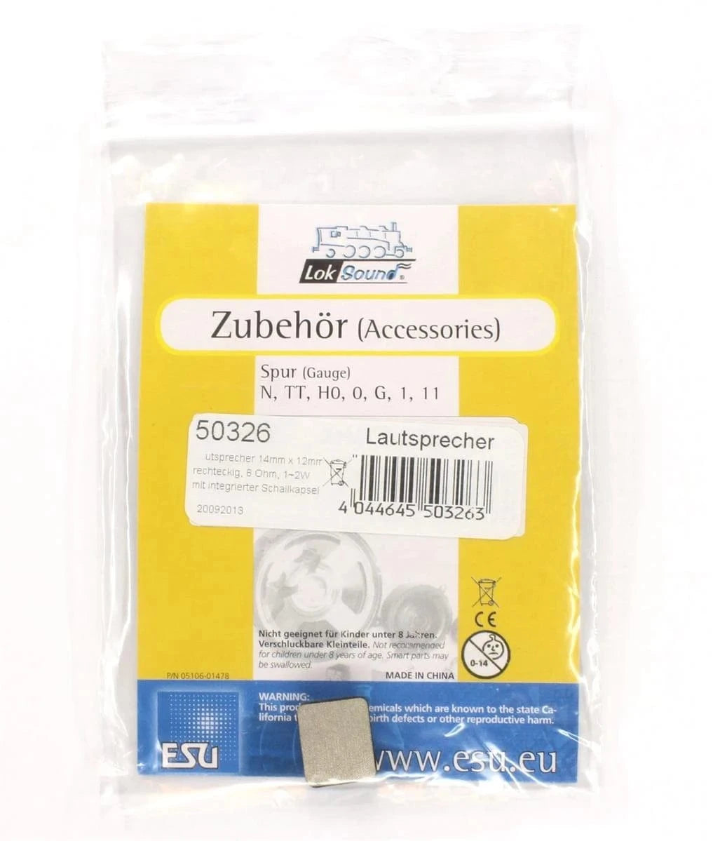 ESU 50326 Speaker 14X12mm Rectangle 4 Ohms is backordered and will ship as soon as it is back in stock.