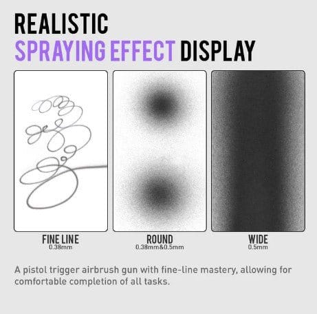 High-Performance Needle : The 0.38 mm & 0.5 mm needle nozzle set exceed your expectation of background coloring and detail airbrushing