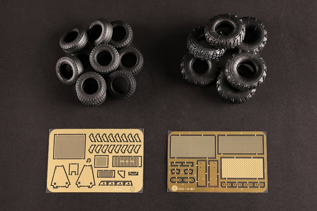 - The main tires are hollow rubber with very good tread pattern included as well as sidewall details.