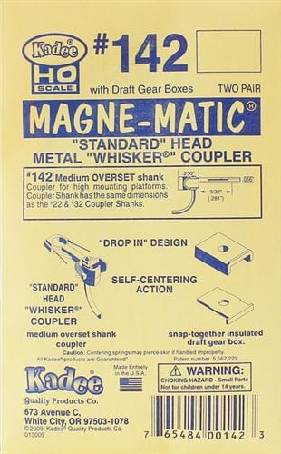 Kadee #142 HO Scale 140-Series Whisker Metal Couplers with Gearboxes - Medium (9/32") Overset Shank is backordered and will ship as soon as it is back in stock.