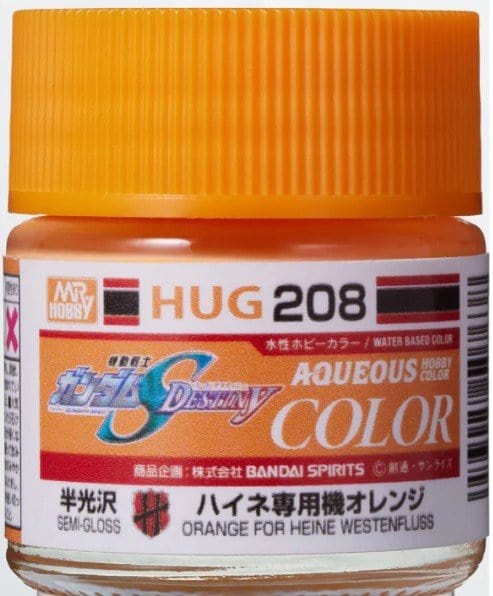 Introducing the Mr Hobby HUG208 Aqueous Gundam Color Gundam Seed Orange for Heine Westenfluss Acrylic Paint 12ml - the perfect addition to your Gundam model kit collection. This innovative acrylic paint is specially designed for use on Gundam Seed Orange kits, giving you the perfect color match for your Heine Westenfluss model.