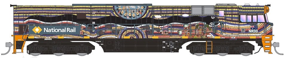 In late 1997 National Rail Corporation out-shopped two NR class locomotives bearing indigenous design based on the work by Alice Springs artist Bessie Liddle.
