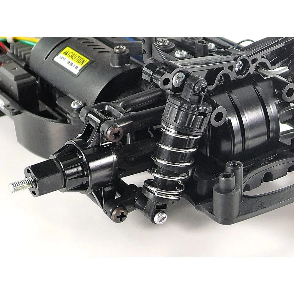 The bathtub frame of the evolved shaft-driven 4WD TT-01 Type-E has its motor and battery close to the ground for lower center of gravity and optimum balance. Mounted on the bathtub frame is a fiberglass reinforced nylon upper deck and gear covers improving rigidity, as well as a three-piece tie rod providing smooth steering action. The low center of gravity, highly balanced design, 4-wheel double wishbone suspension system, and front and rear differential gears all come together to produce an excellent drive. Mesh designs wheels are paired with racing slick tires for the finishing touch, while a host of Hop-Up Option parts are available to soup up the TT-01 Type-E!