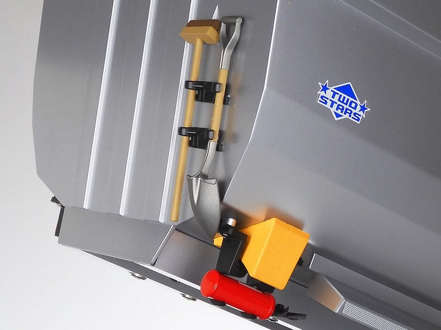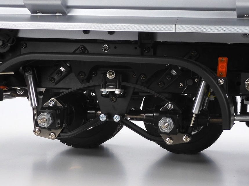 This separately sold set features parts to enable control of Tamiya 1/14 R/C tipper truck beds via separately sold transmitter. It includes geared motor, spindle shaft, link pieces and ACU-01 unit, and can raise beds carrying loads of up to 10kg. A clutch is installed to help prevent damage due to over-loading.