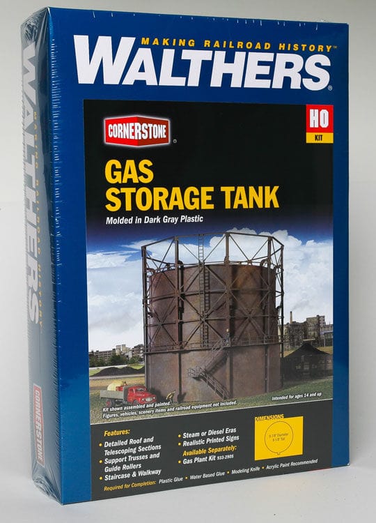 Walthers Cornerstone 933-2907 HO Gas Storage Tank Kit is backordered and will ship as soon as it is back in stock.