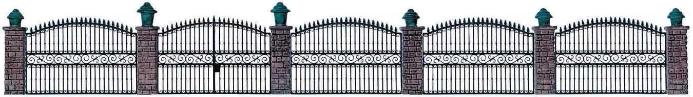 - Includes 10 ornate fence sections, matching gate and cut stone supports