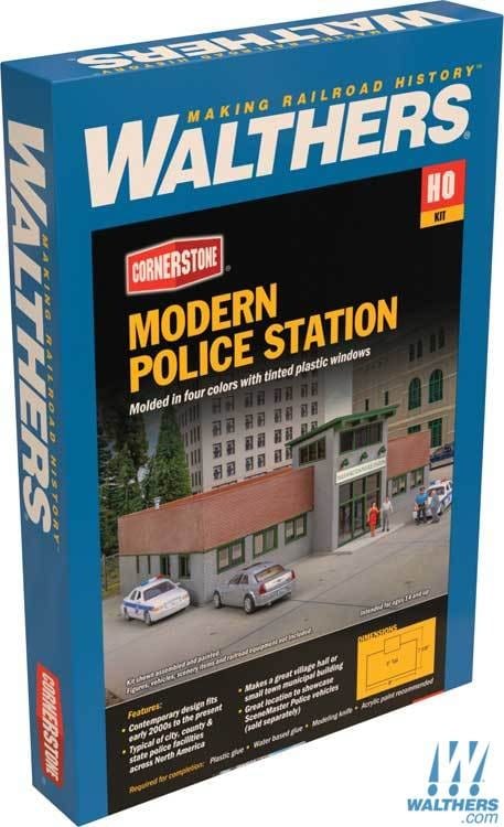 City or suburb, keep the peace in your HO community with the Cornerstone Modern Police Station kit! With a contemporary design perfect for the early 2000s to the present, the finished model is typical of facilties used by city, county and state police agncies all across North America. Similar buildings can be found in smaller communities where they serve as the village hall and local municipal building too! Other features include: