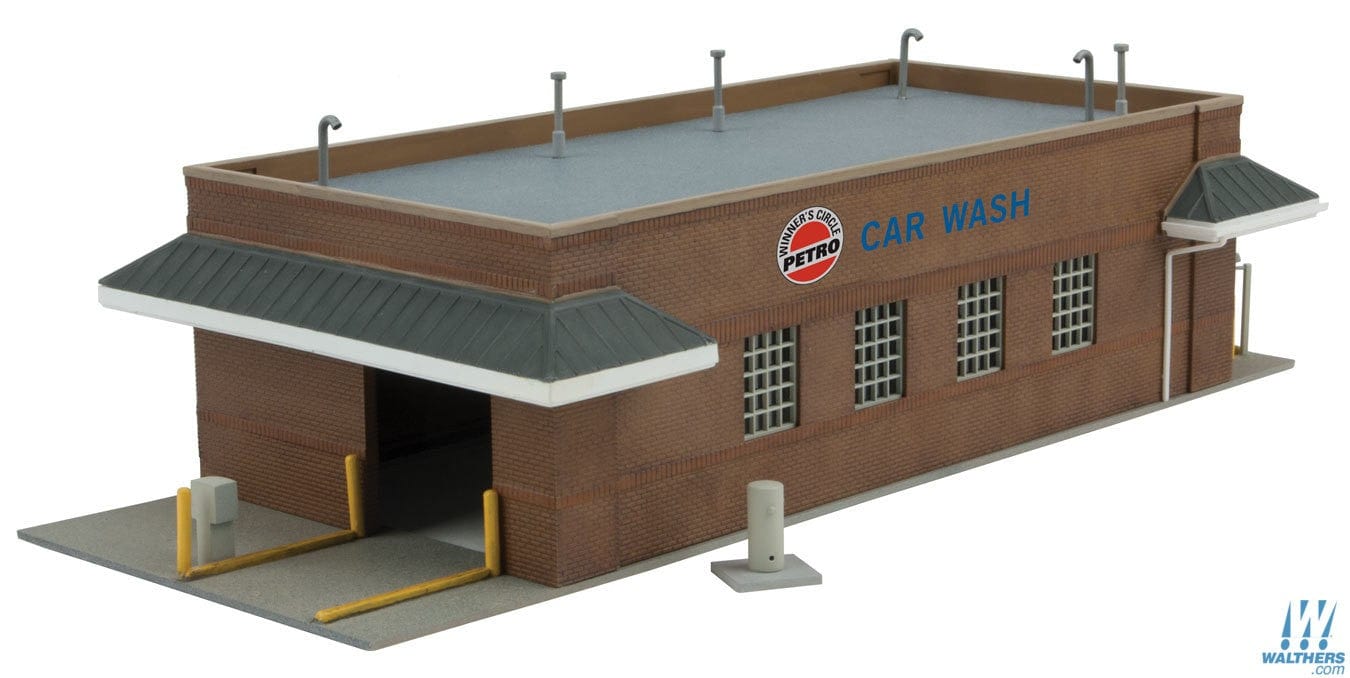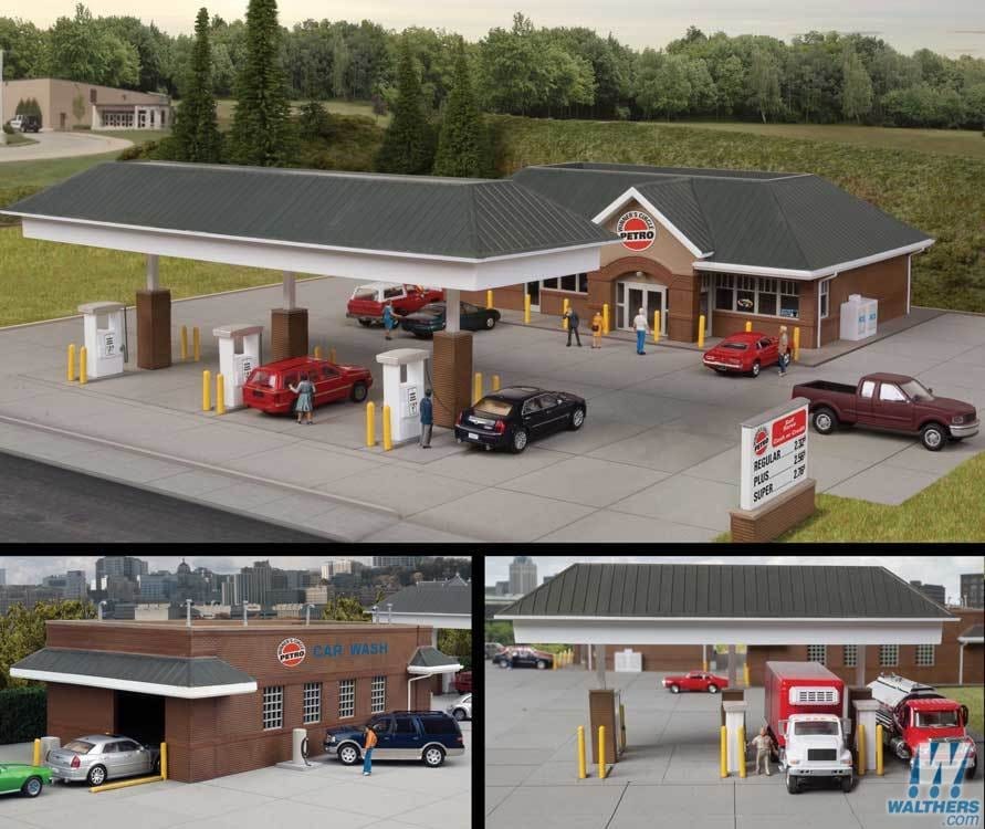 Turn empty space alongside major HO highways and industrial parks into a detailed scene for your contemporary HO layout with the Cornerstone Modern Travel Center. With four detailed structure kits, the set includes a main building typical of contemporary convenience store stations used by many oil companies, car and truck fueling islands, a matching drive-through car wash and eight customizable parking lot sections (easily expanded with matching parts in the Gas Station Parking Lot kit #933-3540, available seprately). Other great details include a price sign, ice machine, rooftop air conditioners and vents, modern upright gas pumps with nozzles and hoses, safety and security posts and much more!