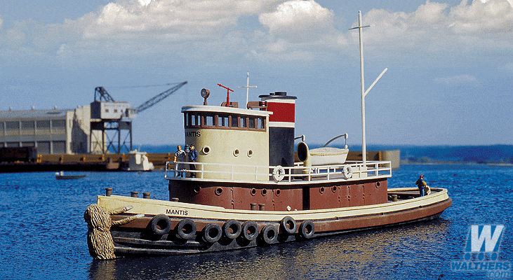 Once a common sight on big city harbors, the prototypes for the Walthers Cornerstone HO Scale Railroad Tugboat were specialized versions of the familiar tugboat. In order to improve visibility over freight cars on the deck of a car float, the railroad tugboat was built with a taller pilothouse. Starting in the 1920s, many railroads began modernizing their fleets with diesel-electric tugs. Not only did they use similar technology to the then-new diesel locomotives, many were painted in the same colorful schemes. These newer tugs remained in service for years, with a few serving new owners yet today. Ready to handle chores in any busy harbor, the Railroad Tugboat kit builds into a detailed replica of the later diesel-electric designs. It features the tall pilot house, along with various roof details, towing bitts, masts and a host of other details. Complete instructions simplify construction and decals are also included. The plastic kit builds into a waterline model with no lower hull detail, so it's easy to add to your new or existing scenery. Your completed model is perfect for use with the Railroad Car Float (933-3152, sold separately) and looks at home in any scene with Cornerstone waterfront structures. The Railroad Tugboat is one of many Cornerstone and SceneMaster HO Scale vehicles.