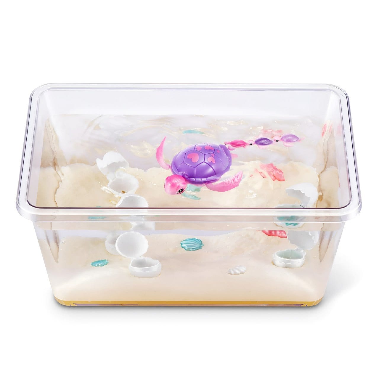 Your Mama Turtle Surprise is here to hatch her adorable family! How many baby turtles will she reveal? 2, 3, or even 4? Plus, there may even be other surprises to discover along the way! When she's not caring for her babies, Mama Turtle comes alive and swims in a full tank of water, bringing endless joy and wonder! Simply fill the tank with water and watch as Mama Turtle gracefully swims around, bringing her underwater world to life. Mama Turtle doesn't just swim - she also loves to get out of the water and walk on land, just like a real turtle. Create a realistic habitat, and enjoy countless adventures with Mama Turtle and her adorable family thanks to a resettable mechanism that means you can hatch her babies again and again.